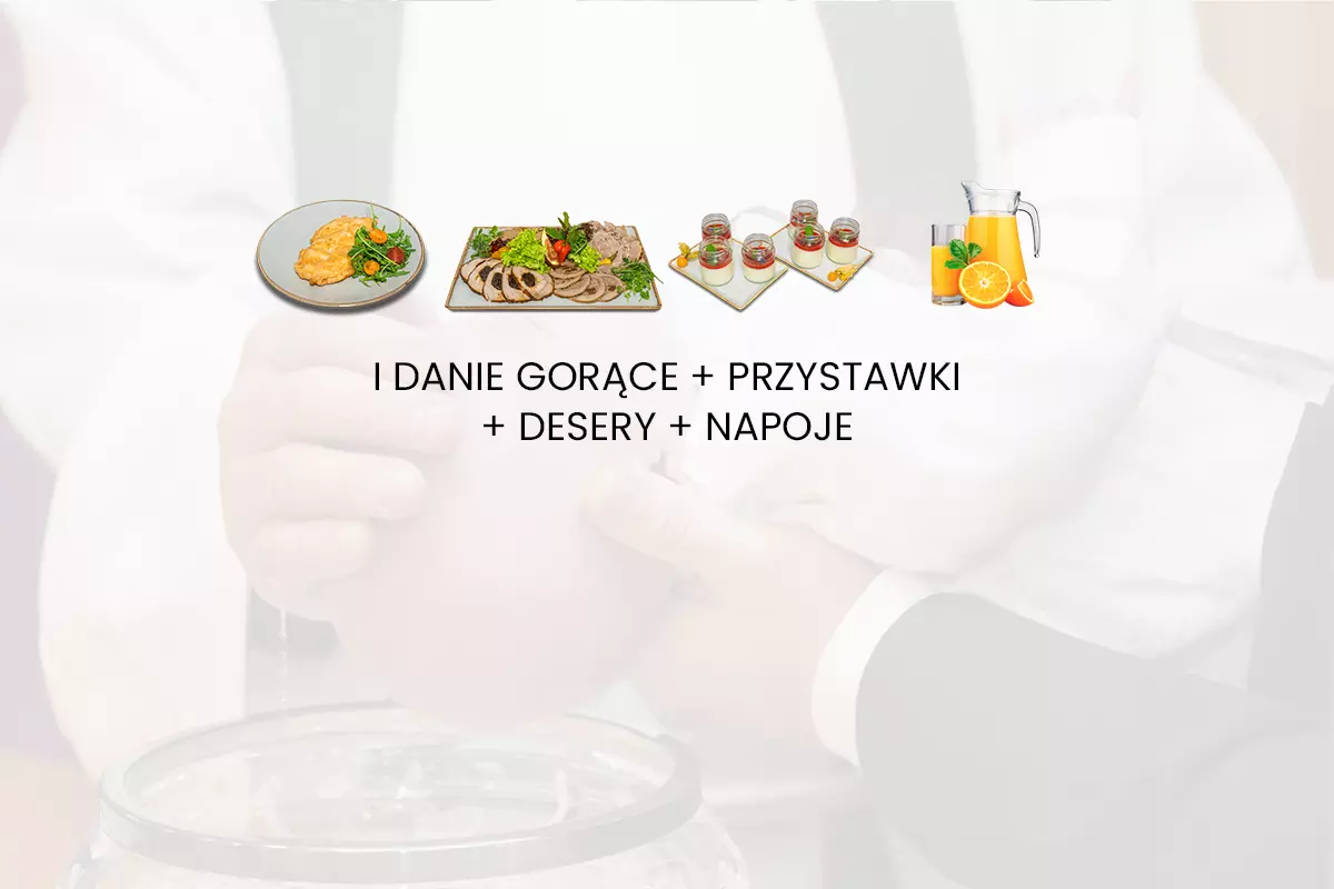 Cena zawiera dostawę (w termosach do samodzielnego rozłożenia). Jeśli są Państwo zainteresowani innymi usługami tj: zastawa, obsługa kelnerska, meble, namioty zapraszamy do kontaktu.
